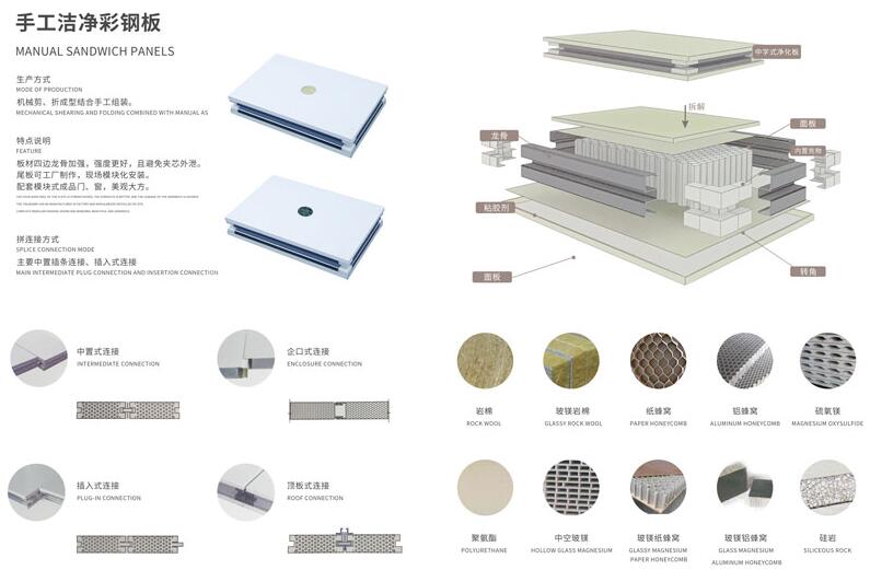 因其芯材采用獨(dú)特六邊形結(jié)構(gòu),具有高抗壓強(qiáng)度,張力好、重量輕,屬于綠色環(huán)保建材,特別適用于高潔凈區(qū)域,是目前潔凈廠房推廣的環(huán)保型板材。