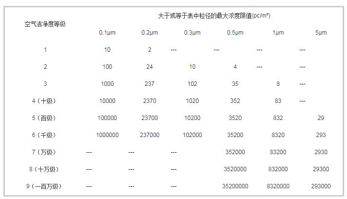ISO凈化車間空氣潔凈度標(biāo)準(zhǔn)表