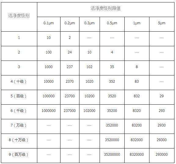 GB(潔凈廠房設(shè)計(jì)規(guī)范)空氣懸浮粒子的標(biāo)準(zhǔn):