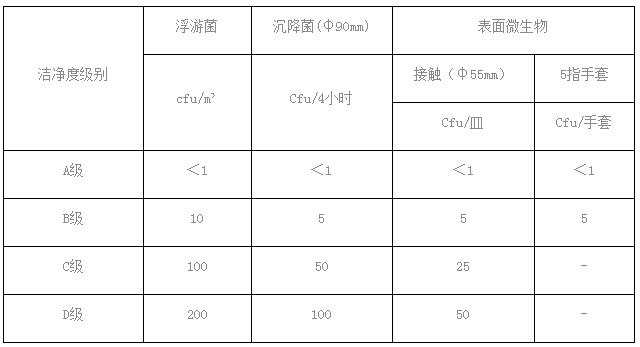GMP(藥品生產(chǎn)質(zhì)量管理規(guī)范2010)的凈化車間空氣潔凈度標(biāo)準(zhǔn)表: