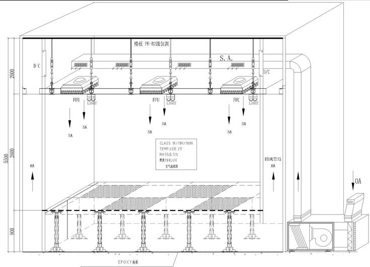 ●電子制造廠潔凈室垂直流潔凈室滿布比不應(yīng)小于60%,水平單向流潔凈室不應(yīng)小于40%,否則就是局部單向流了。